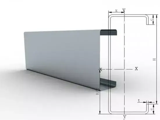 C Purlin je lahek jekleni material, obdelan v prečni prerez v obliki črke C s hladnim upogibanjem. Uporablja se predvsem kot sekundarni nosilni element v jeklenih konstrukcijah, znanih kot gredi, za podporo strešnih plošč in stenskih plošč (kot so barvne jeklene plošče in sendvič plošče), vzdrži obremenitve vetra in snega ter lastno težo in prenese obremenitve na glavni jekleni okvir. Njegova odprta zasnova olajša pritrditev vijakov in vstavljanje cevi, zaradi česar je eden najbolj ekonomičnih in pogosto uporabljenih profilov v zgradbah z lahkimi jeklenimi konstrukcijami. Primeren je za projekte jeklenih konstrukcij, kot so industrijski obrati, skladišča in lahke jeklene vile.