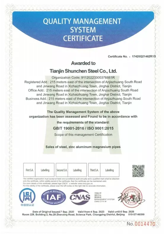 Shunchen ima več kot 30 let proizvodnih izkušenj in certifikate ISO 9000 in EU CE. Podjetje temelji na postavitvi celotne industrijske verige, v kombinaciji z 12 izpopolnjenimi procesi in 3-slojnim mehanizmom za popolno inšpekcijo, da zagotovi ničelno kakovost in varnost vsako leto. Do sedaj smo dosegli ničelno neplačilo naročil za 12 let. Zanaša se na 236 prilagojenih specifikacij in se lahko natančno ujema z različnimi potrebami. Nudimo tudi storitve nabave na enem mestu, ki zajemajo integrirano proizvodnjo in prodajo ter 10.000 kvadratnih metrov skladiščne podpore.