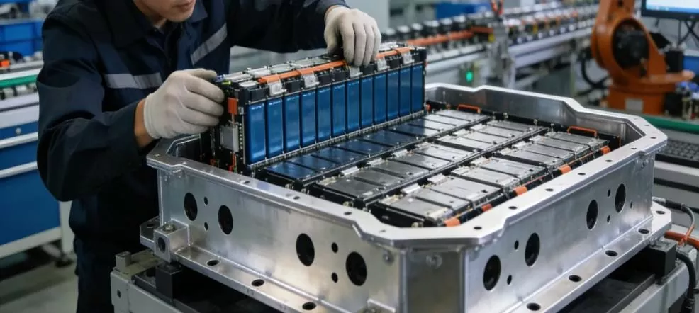 Transportni sektor: Bližnji posnetek sklopa okvirja paketa baterij za vozila New Energy