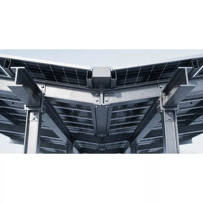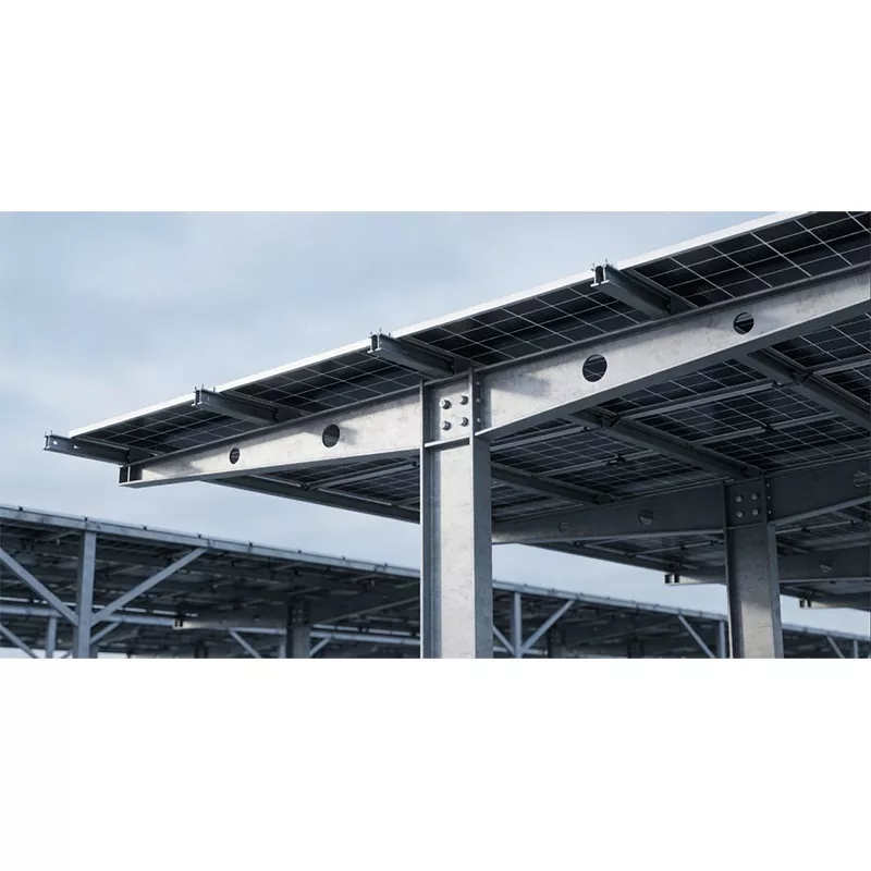 Shunchen Industrial Solar Carport Structure se ponaša z različnimi funkcijami in natančnim pozicioniranjem. Kot osnovna zaščita pri parkiranju se učinkovito upira izpostavljenosti soncu, dežju in snežnemu pritisku, s čimer zagotavlja celovito zaščito za barvo in komponente vozila ter izboljšuje udobje pri parkiranju. Hkrati služi kot idealna platforma za fotonapetostne elektrarne, saj zagotavlja stabilno podlago za fotonapetostne module, zagotavlja, da paneli sprejemajo sončno energijo pod optimalnim kotom nagiba in enakomerno porazdeli obremenitev na temelj, kar zagotavlja strukturno stabilnost in varnost. Poleg tega ima ta struktura zmogljive zmogljivosti za pretvorbo in uporabo energije, pretvarjanje sončne energije v električno za povezavo z omrežjem ali lokalno porabo, kot je napajanje polnilnih postaj, zadovoljevanje potreb parka po električni energiji, spodbujanje nadomeščanja čiste energije in zmanjšanje stroškov električne energije. Še pomembneje pa je, da podpira prilagajanje več scenarijem in se lahko integrira s polnilnimi postajami, pametno razsvetljavo, nadzornimi sistemi itd., da ustvari integrirano rešitev pametnega parkiranja, ki združuje "parkiranje + proizvodnjo energije + polnjenje."