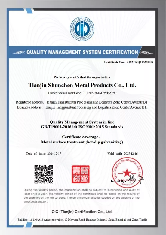Tianjin Shunchen Industrial Company je obsežno podjetje industrijske verige. Ustanovljen je bil leta 2014, njegov sedež pa se nahaja v industrijski coni Daqiuzhuang, ki je ključno jeklarsko središče na Kitajskem. Poslovanje podjetja pokriva več področij, vključno z globoko obdelavo jeklenih izdelkov ter proizvodnjo in predelavo vročega cinkanja. Njene hčerinske družbe vzdržujejo celoletno zalogo več kot 20.000 ton pocinkanega jekla, s čimer vzpostavijo obsežen supermarket pocinkanega jekla, ki združuje skladiščenje in distribucijo. Z izbiro osmerokotnih palic posebne oblike vam lahko Shunchen Industrial zagotovi visokokakovostne izdelke in profesionalne storitve.